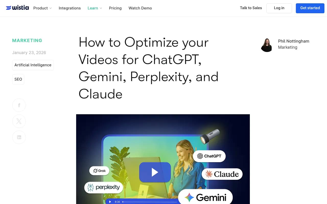 - Consider tools like Wistia's LLM-friendly embeds that include transcripts in the embed code